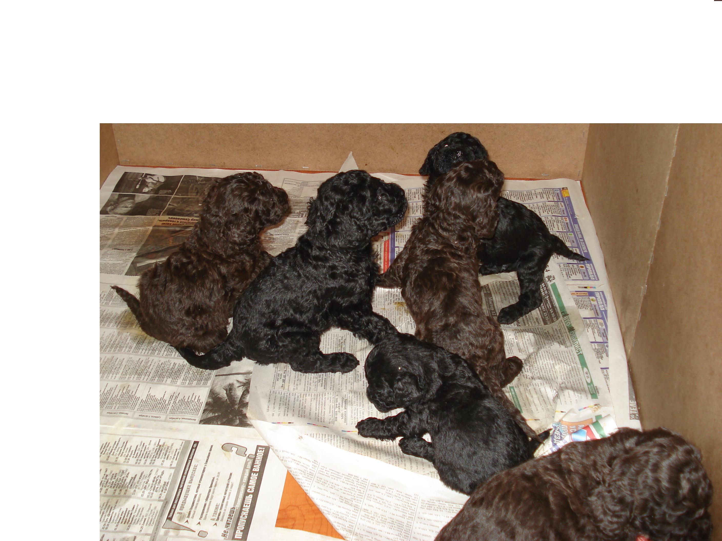 продаются щенки среднего пуделя дата рождения 26.09.2009 г. возраст пока 5 недель; мальчики и девочки,крепкие-красивые-породистые-веселые, окрас черный и коричневый, с документами